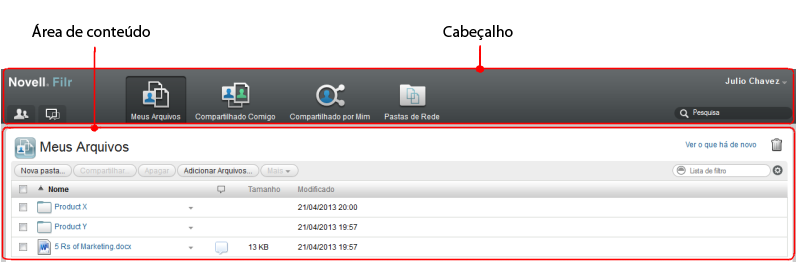 A Área de Conteúdo no Filr é onde grande parte das informações é exibida.