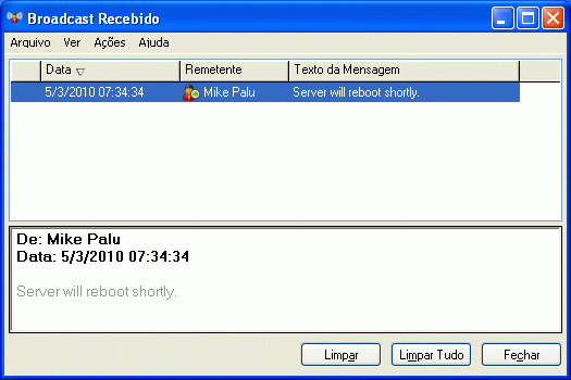 Quando um broadcast é enviado a você, a janela Broadcast Recebido é exibida.