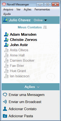As opções do Novell Messenger ficam disponíveis apenas quando o Novell Messenger está instalado e em execução.