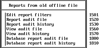 Choose Reports from old offline file from the Available audit options menu (1101).