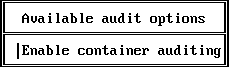 The four top-level Available audit options menus for container auditing are as follows: