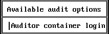 Choose Auditor container login in the Available audit options menu and press Enter.