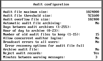 Choose Audit options configuration from the Auditing configuration menu (2400).