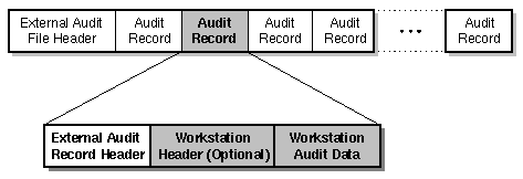 This section defines the binary format of each audit record in the external audit trail. Each audit record has a fixed header and, potentially, additional event-specific data.