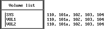When you choose the new volume, AUDITCON updates the volume in the second line of the AUDITCON header.
