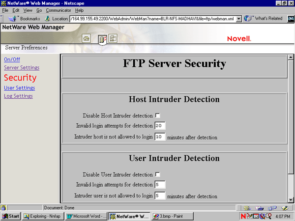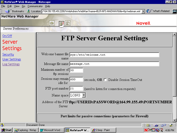 You can use the NetWare Web Manager for administering FTP Service from client- side.To do this, enter the following URL to display the Service Selector panel (the default port number is 2200):