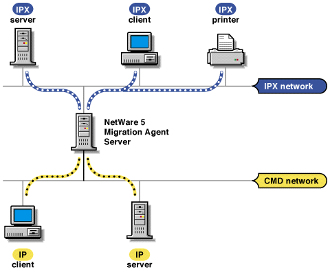 The Migration Agent is a tool that enables communication between IPX and IP systems. It also enables you to create an IP backbone that interconnects IPX segments. Use this tool when you want to migrate systems from IPX to IP in a phased manner without losing connectivity.