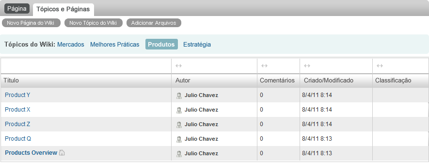 Clique no Tópico do Wiki com as páginas que deseja classificar.