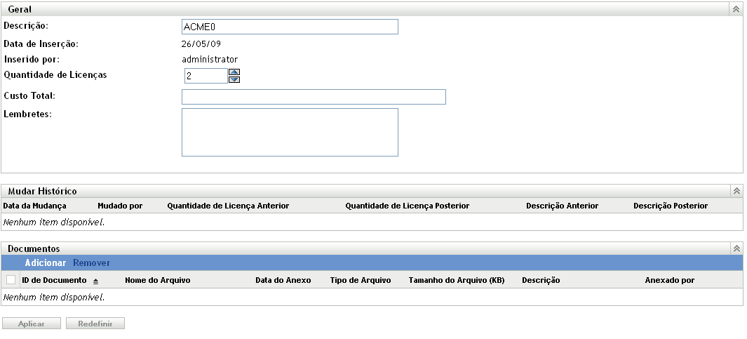 Quantidade de Licenças: Especifique o número de licenças a serem usadas nos cálculos de conformidade.