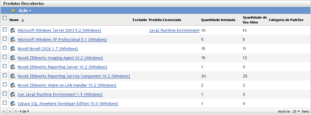 Selecione os produtos descobertos que deseja adicionar a uma coleção de software.