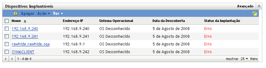 Nesse painel, você pode implantar o Adaptive Agent em dispositivos, remover dispositivos do banco de dados do ZENworks ou ignorá-los descartando-os da lista.