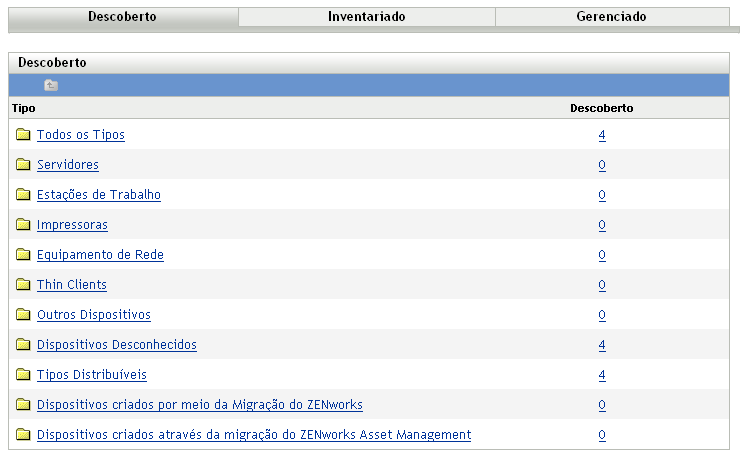 Figura 5-1 Painel Descoberto (guia Dispositivos > página Descoberto)