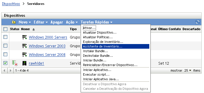 Para executar uma exploração de inventário usando o menu Ícone do ZENWorks: