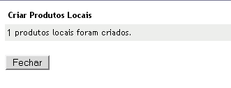 É exibida uma caixa de diálogo, confirmando que os produtos foram criados.