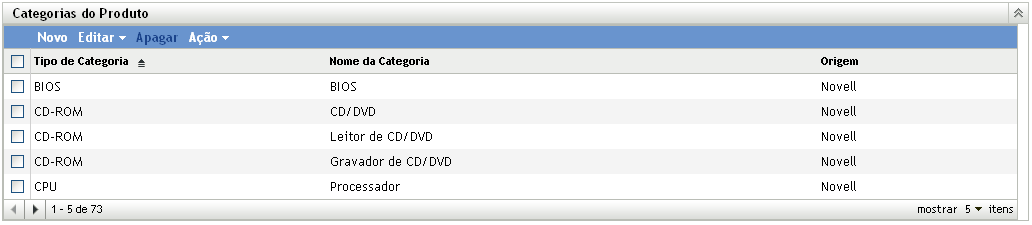 Tipo de Categoria: A categoria do produto, como CPU ou CD-ROM. Ela é predefinida.