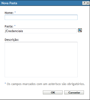 No painel Cofre de Credencial, clique em > para exibir a caixa de diálogo Nova Pasta.
