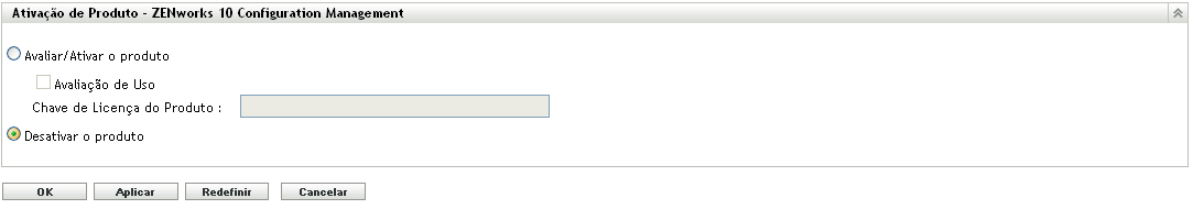 No painel Licenciamento do Produto, clique no produto que deseja desativar.