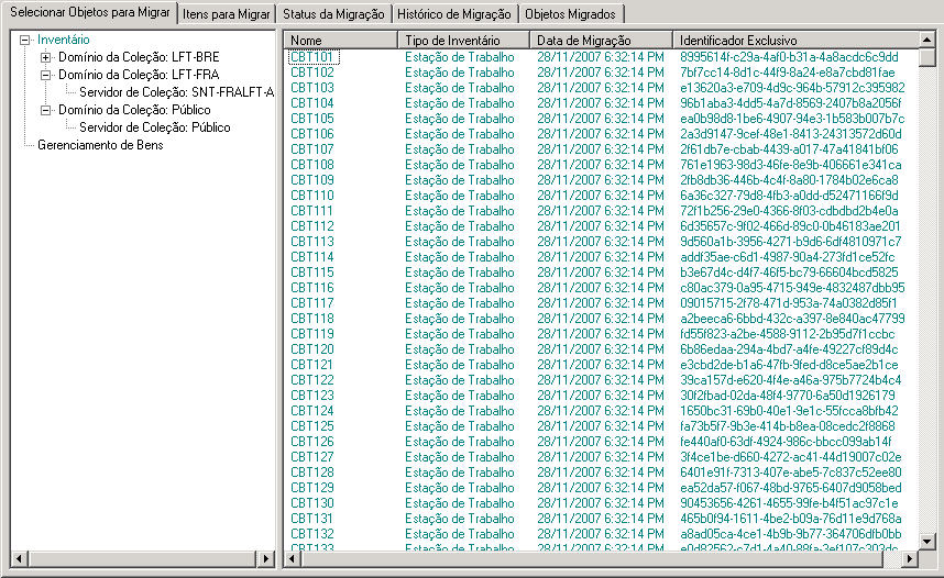 NOTA:Para migrar estações de trabalho marcadas como apagadas, clique em Ferramentas > Opções e selecione Migrar Estações de Trabalho Apagadas.