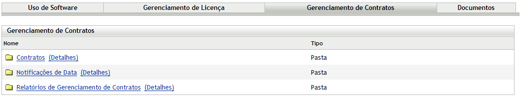 O ZENworks® Asset Management permite criar registros de contratos (em geral, chamados simplesmente de contratos) para os bens da sua organização. Você pode então monitorar o status dos contratos e gerar relatórios que mostrem diversos detalhes dos contratos.