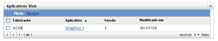 No painel Aplicativos Web, clique em para iniciar o Assistente Criar Novo Aplicativo Web. Preencha os campos do assistente usando as informações da tabela a seguir.