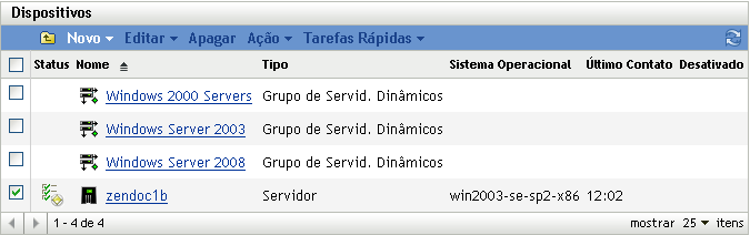 Figura 14-1 Painel Dispositivos exibindo a lista de servidores.