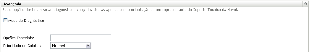 AVISO:Essas opções destinam-se ao diagnóstico avançado. Use-as somente sob a orientação de um Representante de Suporte da Novell.