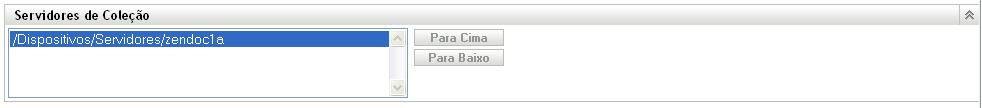 No painel Servidores de Coleção, use os botões e para organizar os servidores de coleção.
