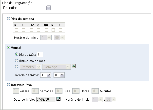 Selecione se deseja que a exploração seja executada quando um dispositivo for atualizado em certos dias da semana, mensalmente ou em um intervalo fixo.