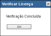 A caixa de mensagem indica que a verificação da licença de inscrição foi concluída ou que a licença expirou.