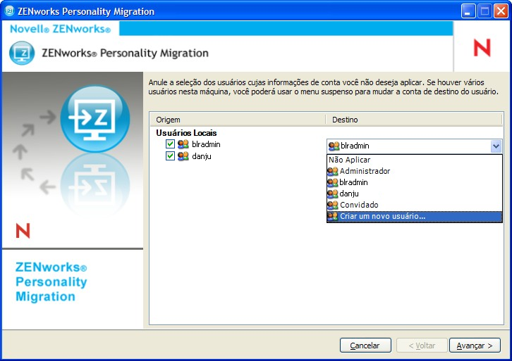 Personalizada: Permite que você personalize as configurações e os dados de personalidade antes de migrá-los para o sistema de destino. Você pode escolher migrar a personalidade para usuários diferentes ou criar novos usuários no sistema de destino. Continue na Etapa 7.