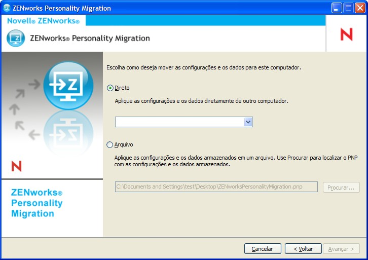 Arquivo: Usa as configurações e os dados da migração em um arquivo PNP. Clique em para procurar e selecionar o arquivo PNP gravado durante a operação de armazenamento. Pule para o Etapa 7.
