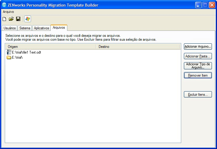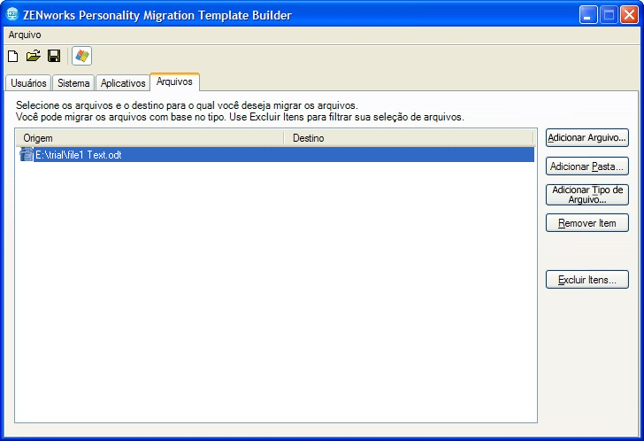 Modelo é um arquivo XML que pode ser lido e editado com qualquer editor. Portanto, usar o Construtor de Gabaritos para o ZENworks Personality Migration é uma forma conveniente de criar gabaritos personalizados para migrações, garantindo uma migração padronizada e consistente em toda a organização.