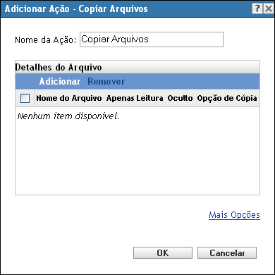 Figura E-3 Caixa de diálogo Ação - Copiar Arquivos