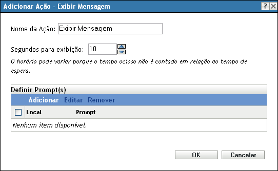 Figura E-6 Caixa de diálogo Ação - Exibir Mensagem