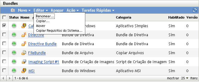 Na lista , marque a caixa de seleção ao lado do(s) bundle(s).