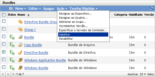 Na lista Bundles, marque a caixa de seleção ao lado do(s) bundle(s).
