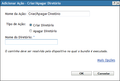 Criar Diretório: Cria um diretório no dispositivo gerenciado quando a ação é executada.