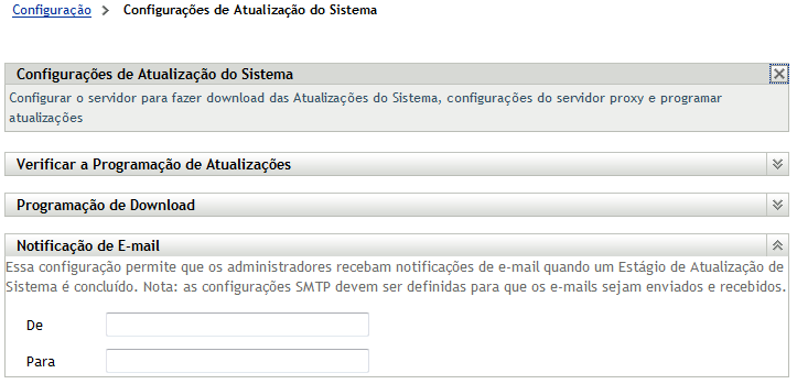 De: Especifique o endereço de e-mail do seu administrador ou digite algo descritivo, como System-Update-Stage-Notice. Não use espaços entre palavras.