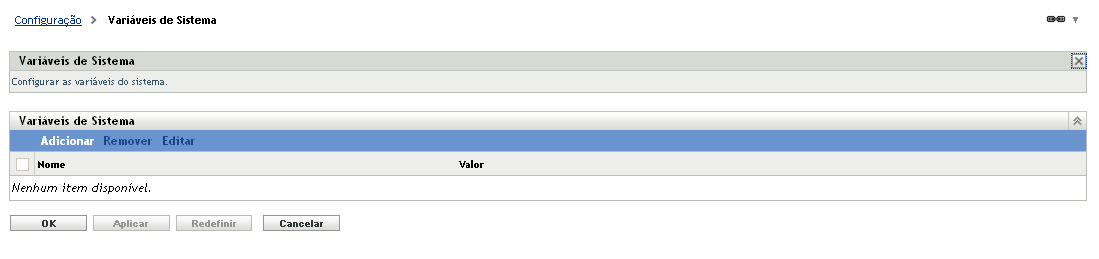 Ao configurar variáveis de sistema para uma pasta, dispositivo ou bundle, você poderá anular uma variável herdada, definindo uma nova variável com o mesmo nome, mas com um valor diferente. Por exemplo, se Var1=c:\ for herdada, você poderá anulá-la definindo Var1=d:\.