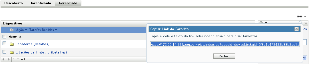 Se você estiver conectado ao ZENworks Control Center ao clicar em um favorito, a localização será imediatamente exibida.