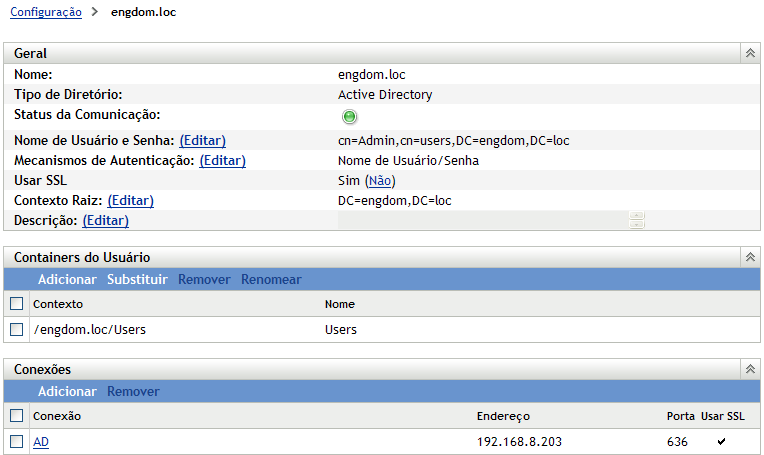Nome da Conexão: exibe um nome descritivo para a conexão com o diretório LDAP. Não é possível editar esse campo.