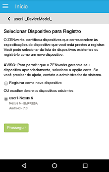 IMPORTANTE:Durante a reconciliação manual, é importante que o usuário selecione a opção correta. Se uma opção incorreta for selecionada, o ZENworks não poderá gerenciar o dispositivo apropriadamente.