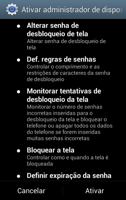 Clique em Ativar administrador de dispositivo para que você possa gerenciar o dispositivo executando as operações listadas nesta tela.