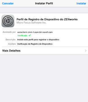 O Perfil de Registro de Dispositivo do ZENworks contém o perfil do MDM necessário para o ZENworks gerenciar o dispositivo.