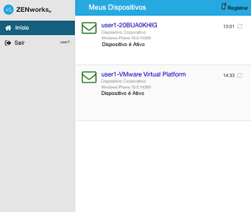 NOTA:Se o dispositivo permanecer no estado Registro em andamento por um período de tempo considerável, no Portal do Usuário do ZENworks, toque no ícone Atualizar que aparece para o dispositivo.