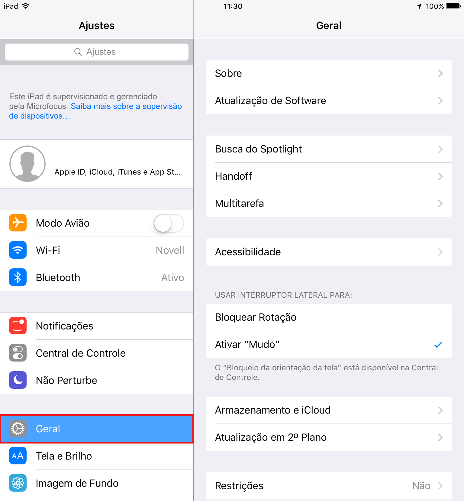 Navegue até o menu Configurações no dispositivo e clique em Geral.