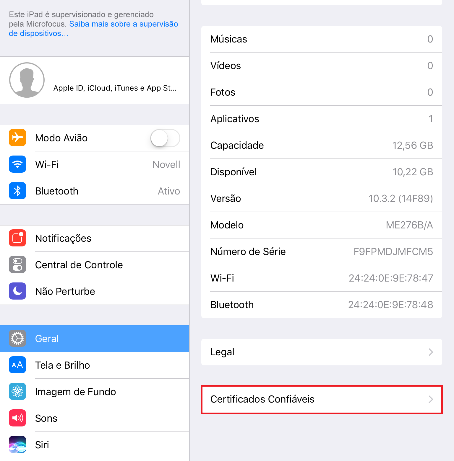 (Condicional) Habilite o certificado de registro no dispositivo. Esta etapa será exibida nos dispositivos com iOS versão 10.3 ou mais recente. Para habilitar o certificado: