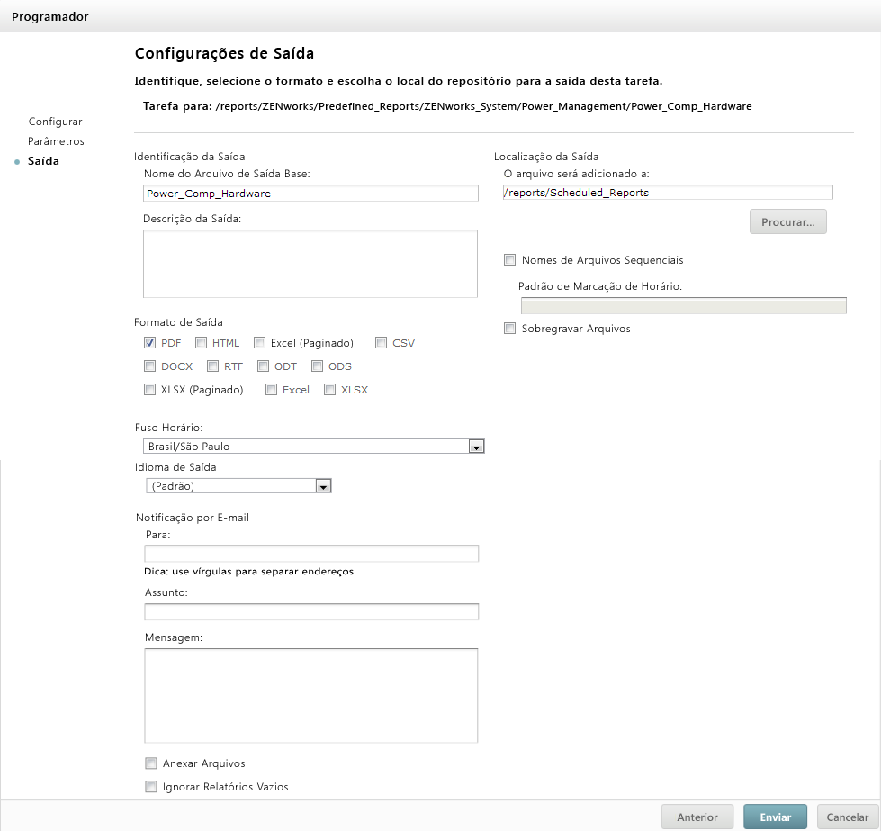 • Anexar Arquivos: Selecione essa opção para enviar a saída do relatório com a notificação por e-mail.