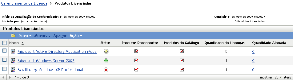 Na lista Produtos Licenciados, clique no produto licenciado para o qual deseja alocar licenças.