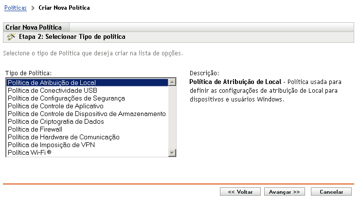 Atribuições de Local: As políticas podem ser globais ou baseadas em local. Uma política global é aplicada independentemente do local. Uma política baseada em local é aplicada apenas quando o dispositivo detecta que está dentro dos locais atribuídos à política.
